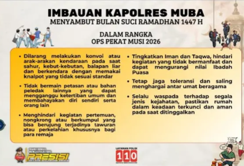 FRIC-MUBA, Musi Banyuasin — Mengutip dari sumber yang diterima, Kapolres Musi Banyuasin AKBP Ruri Prastowo, S.H., S.I.K., M.I.K., menyampaikan imbauan...